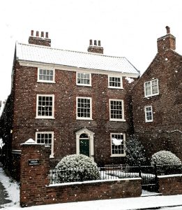 The house is set back in a formal front garden enclosed by railings which is a rarity in inner York.