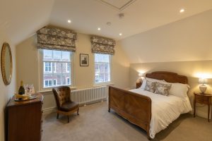 Although the bedroom overlooks the street at the front, the secondary glazing will ensure a quiet night’s sleep.