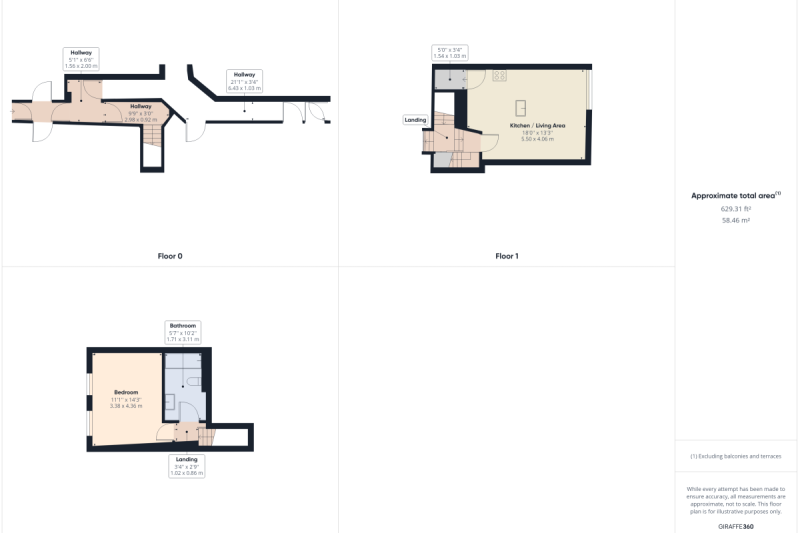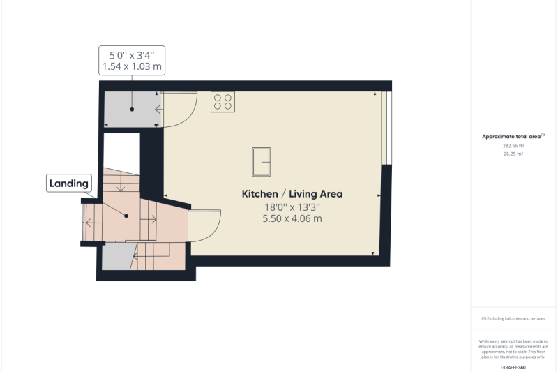This is a first floor one bedroom apartment with a large kitchen living room – finished and furnished to a high standard. You enter from the ground floor to a private staircase up to the open plan kitchen/living/dining room, and then up a further steep narrow staircase to the bedroom floor with ensuite bathroom.