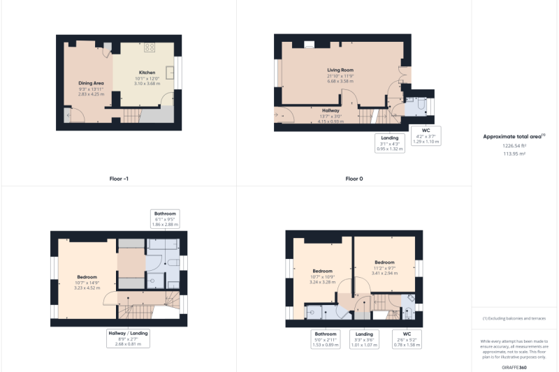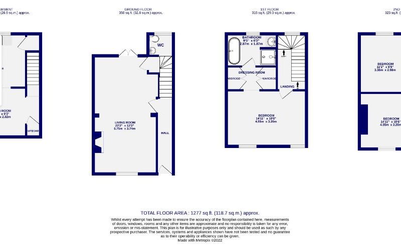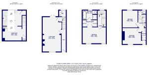 Full of character and arranged over 4 floors, the kitchen and dining area is in the basement, with living space on the ground floor, and the bedrooms on the 1st and 2nd floors. There is a master bedroom with changing room and ensuite bathroom on the 1st floor, and a double and twin on the 2nd floor, sharing a shower room (the twin room has zip and link beds to present as a twin or a super-king on request).