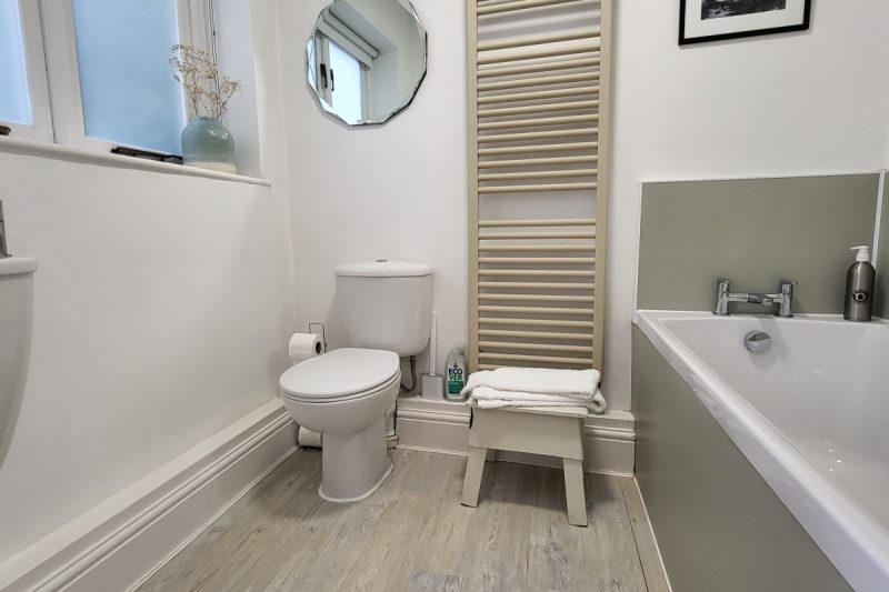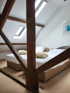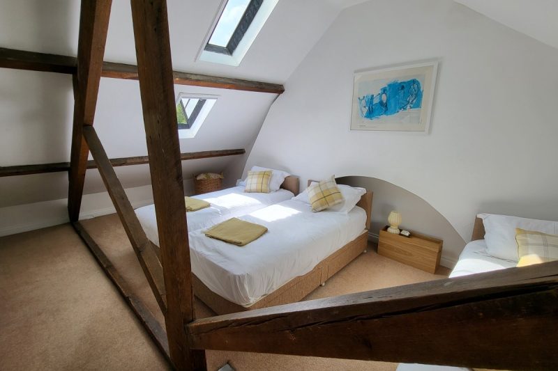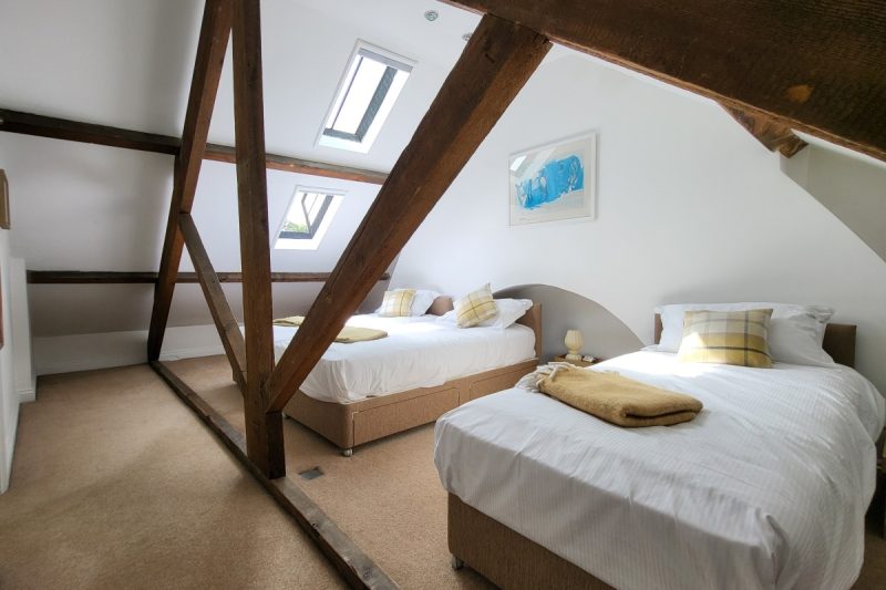 Three bedrooms and three bathrooms, with the loft room providing the option of 3 single beds or zipped together to create a super-king and a single – the top floor is also en-suite. The beautiful original beams on the top floor make this room a great den for the younger members of your group or a luxurious master suite at the top of the house.