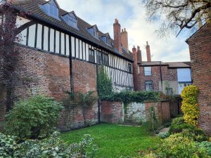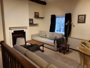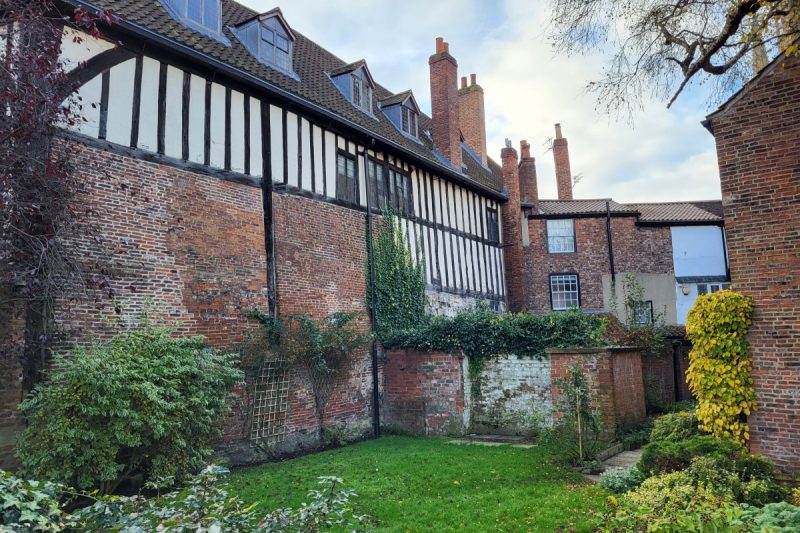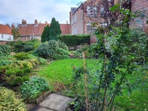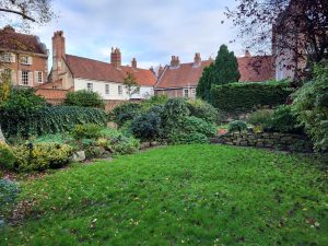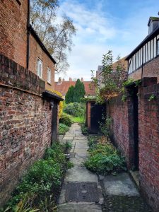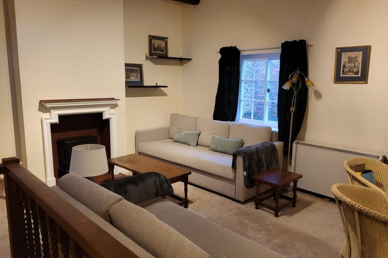 On the ground floor there is a lovely romantic bedroom with an upholstered French bed and shower room, then on the first floor a large open plan living-dining-kitchen space with comfortable seating and room to relax. Adding more to this wonderful combination is the garden space, which will obviously be a summer-time delight, with the medieval St Williams College next door and peaks of the Minster above the roof tops. Minster View and Minster Garden (5 Minster Yard and 2 College Street) were originally part of a 2 story row of tenements built in the 1300s, and exposed parts of the medieval structure provide a link to this long history.